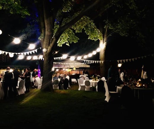 Der Gastraum kommt nun "ein bisschen moderner" daher, sagt Alexander Rüdiger, außerdem habe man den Garten auf Vordermann gebracht und die Terrasse so gestaltet, dass sie auch bei schlechtem Wetter nutzbar ist. Platz haben sie für 60 bis 65 Menschen. Kommen noch mehr, gehe das zulasten der Tanzfläche im Haus. Rüdiger und Geier arbeiten mit vier Köchen zusammen, darunter Fritz Schuster, der schon früher im Alten Forsthaus in der Küche stand. "Dadurch können die Kunden genau das an Speisen bekommen, was sie haben möchten", sagt Rüdiger. "Wir sind da sehr flexibel." Ebenso bei der Preisgestaltung: Das Angebot reicht vom kostengünstigen Grillen im Garten bis zum Fünf-Gänge-Menü vom Spitzenkoch. Dass ihr Angebot einschlägt, davon sind sie überzeugt. "Es gibt nur wenige Orte wie diesen im Großraum und wenn man dort Hochzeit feiern will, muss man mit Wartezeiten von zwei Jahren rechnen", sagt er. "Wir hingegen haben für 2018 noch Termine frei." Sein Ziel sind im Sommer "ein bis drei" Veranstaltungen pro Woche. Gegenwärtig sei das Alte Forsthaus sogar jeden zweiten Tag belegt: wegen der vielen Firmenweihnachtsfeiern.